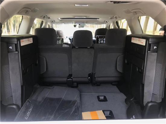 内饰方面:四门无钥匙进入,一键启动,桃木内饰,多功能方向盘,巡航定速,小屏导航,自动空调,遥控启动,液晶仪表盘,无线充电,冰箱,主副驾驶电动座椅,7座原厂真皮座椅,八气囊,中央差速器。