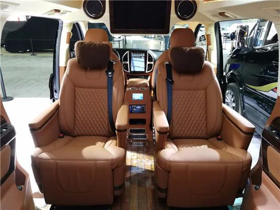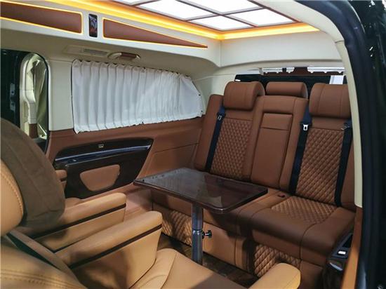 奔驰威霆安道尔7座改装商务车●全新安道尔航空座椅、气动按摩、加热、通风、一键式记忆座椅调节、腿拖调节、靠背前后调节,头枕升降,电动肩部支撑。 ● 豪华沙发床加热、靠背调节、腿拖调节、半展平状态。 ● 可拆卸式娱乐活动桌 ● 沙发床后背手动储物抽屉 ● 四季实用透明环保地膜 ● 经典镀络衣架 )限量版手工高光泽S级 (配置|询价)座椅扶手 外观部分 ● 车身尺寸MM5370*1928*2080(长宽高) ● 整车外观镀铬件装饰、镀络门踏 ● 整车漏电保护系统。(拨打文末VIP热线获取成交底价!)