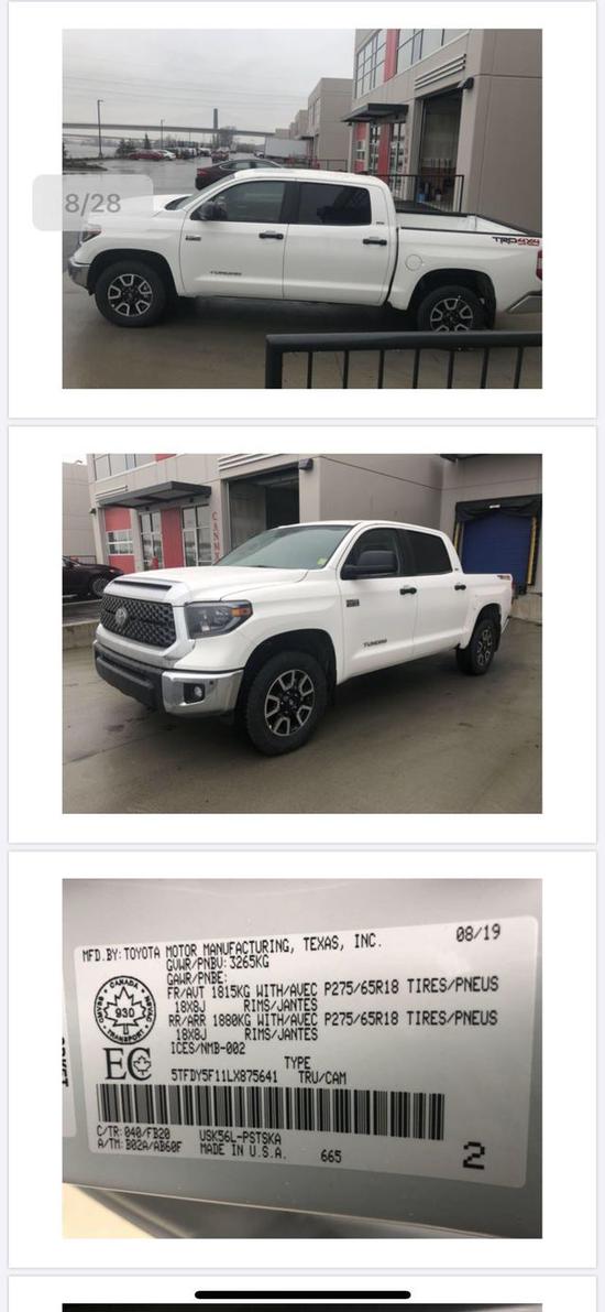 丰田坦途排量5.7L自然吸气,8缸V型,最大功率380KW,最大功率转速6500prm,最大扭矩544Nm,变速箱6挡手自一体,四驱两驱切换,车身长宽高(5814*2006*1935mm)市区油耗20.00L/100KM,郊区油耗17.00L/100KM,最高车速185km/H,轴距3700mm,整备质量2419Kg,满载质量3268Kg,最小离地间隙270mm,四门五座,汽油,国五排放标准,油箱容积139升,非承载式车身。