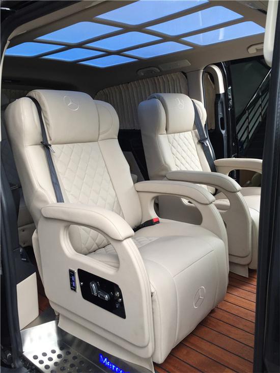 奔驰威霆 (配置|询价)商务车改装比较重要的一项就是座椅,座椅的造型、舒适程度、功能是否齐全是一辆商务车改装很重要的方面。随着生活水平的提高,汽车已经走进人们生活了,很多家庭、企业不仅拥有几台车,更是对车辆的用途进行了分工,比如商务接待用车对内饰的要求也很高。