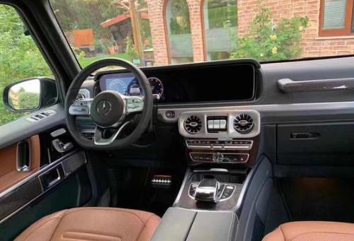 2020款奔驰G500经过全新改款中控大屏和仪表部分也采用了科技感满满的双12.3寸巨幕,空调出风口也改为重新设计的炮筒式,豪华感和科技感大大提升。0搭载的4.0L双增压V8发动力,搭配7挡手自一体变速箱,最大马力422马力,最大扭矩610N/m,车身尺寸4764*1867*1954,前后轴距为2850mm,最小离地间隙205mm,油箱容积96L,百公里油耗市区约14.5L,高速约11L。强劲的楔形特征以及醒目的奔驰车标使其在静止不动的时候都能让人感受到他的奔放气息。