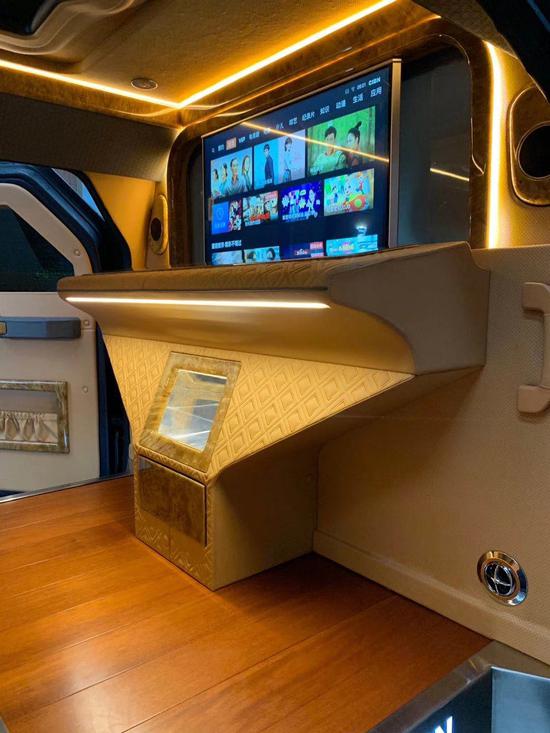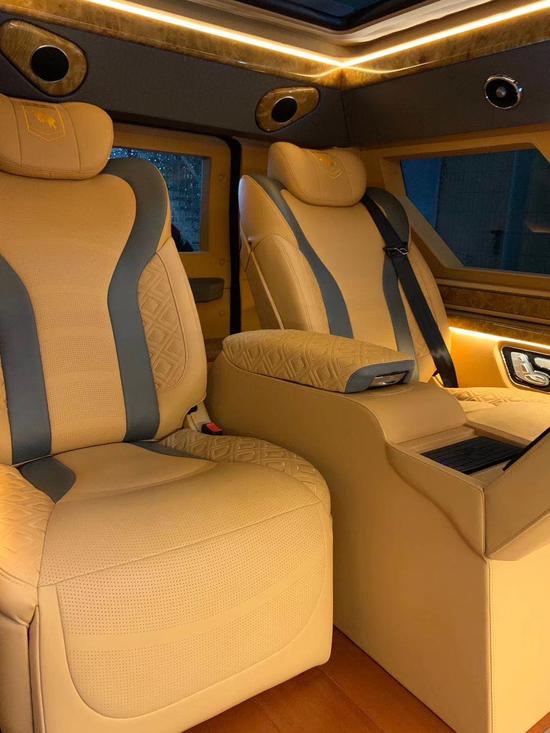 乔治巴顿内部配置:前排座椅8项电动座椅,中排8项加热通风按摩电控座椅,后厢独立空调,10°后舱LCD娱乐屏。阿尔派音响,前排车载导航蓝牙系统。USB顶棚触摸式阅读灯+氛围灯条,铝合金内饰,复古高光原木风格,钢琴烤漆地板。