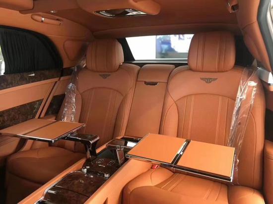 20款宾利慕尚内部充分利用额外的后排空间,宾利研发了航空式电子腿托,组装在两个后排座椅的基座上。腿托可以向外延伸和旋转,为后排乘客提供直立、放松、倾斜等不同座椅位置的乘坐体验。在慕尚长轴距版的两个后排座椅之间,有一个控制台,还提供各种实用功能,例如USB接口、笔架、杯托和玻璃盖储存区。(更多车型价格配置详情致电文章底部联系方式)