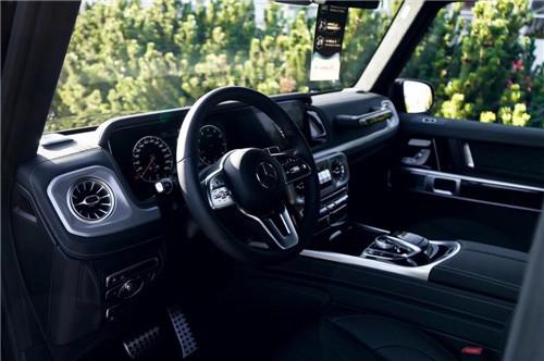 内饰方面其实才全新一代G级最大的变化。新车换上了奔驰最新家族式的内饰设计,这无疑让G级拥有了旗舰级应有的豪华感,不过经典的副驾驶席扶手和三把锁的开关键依旧延续了经典设计,并设置在中控台最显眼的位置。其中双12.3英寸高清屏,虚拟仪表盘与中控液晶屏融为一体,视觉上形成一个宽屏驾驶舱,中部的涡扇式空调出风口也颇具设计感,还大量采用了皮革的包覆。另外,新一代G级还对驾乘空间也进行了优化。