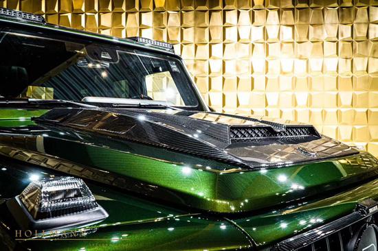 车身安装一组宽体之星套件,车身宽度增加8cm。前脸设计更加运动,进气口加大增加散热效率。世界上性能最强的全地形越野车之一,其简洁明朗的线条勾勒出越野车应有的刚劲线条,又有奔驰家族特有的豪华与古典气质。平实的表面和简约的直线赋予了G级车独特的风格。