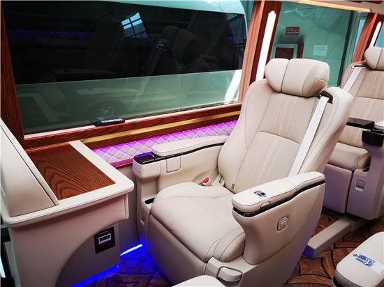 丰田考斯特改装商务车特别注重对高贵品质的追求,内饰的设计是丰田考斯特改装商务车打破传统观点的最重要之处。丰田考斯特改装商务车致力于打造最完美的商务车座驾。在内饰的设计上充分体现了舒适感和实用性的完美结合。丰田考斯特改装在舒适性的考虑上增加了真皮航空座椅,电动调节装置可以让您自行调节最舒适的空间距离以及靠背以及脚托的角度,特殊的座椅构造,增加腰部的支撑,宽敞的空间让您的双腿收放自如,忘却旅途的紧迫感。