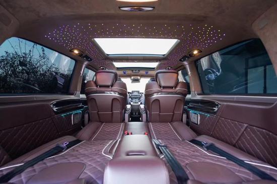 奔驰V260侧面车身流畅灵动,后仓隐私玻璃能让车内人员低调出行。车顶的行李架个跟车底的侧裙边遥相呼应,使整车看上去透着浓烈的商务气息。20款奔驰V260L驾驶舱经过设计师的打造,给人感觉不像是一台商务车,反而透着一股运动气息,黑红的搭配前卫时尚,中控台皮革缝线贴合缜密,做工保持着奔驰一贯的品质。正副驾驶座后背标配折叠小桌板,桌板上方是加装的后娱系统。座椅中间有款触控屏,可以控制车内的灯光。