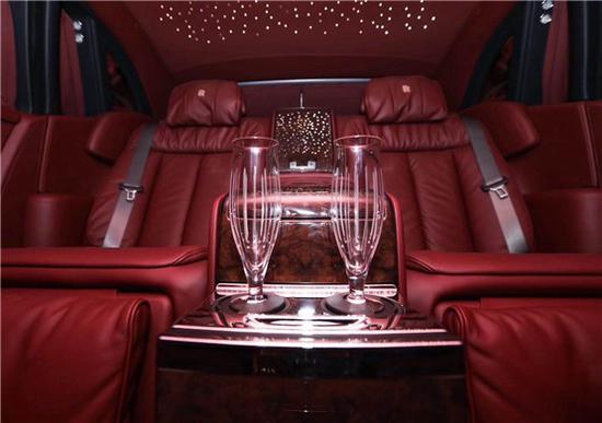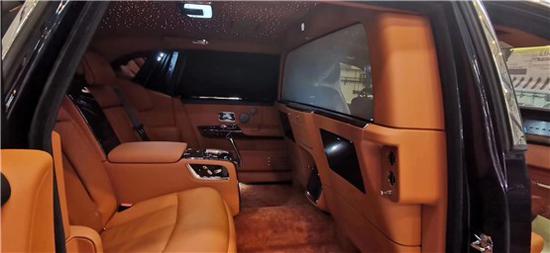 劳斯莱斯幻影加长版,4门4座版本 6.7T,V12,571匹马力,8速手自一体,双涡轮增压,长*宽*高5990*2018*1656,轴距3772,时下最流行的爱马仕橘色缝线搭配曜石黑内饰,绝无仅有的搭配。通过对铝的完美使用,庞大的车身控制在2745KG重,并采用全新的N74B68A双涡轮增压6.7T V12发动机,最大功率420KW,在1700转下就可以发挥最大扭矩900NM,与八速手自一体变速箱的的通力合作,使新幻影0-100Km/h的加速仅为5.4秒。