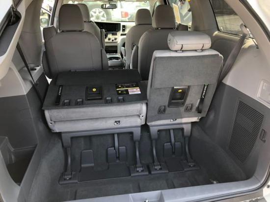 20款丰田塞纳内部空间非常大,充分发挥了MPV的优势。 座椅全部采用双色真皮,第二排座椅的腿部支撑,放倒第三排座椅,加上腿部支撑,完全变成了两张摇篮床,让长途旅行多了一份舒适。宽敞舒适后座空间,配上该车安全稳定的行驶系统,保证途中也能舒适地谈上生意。