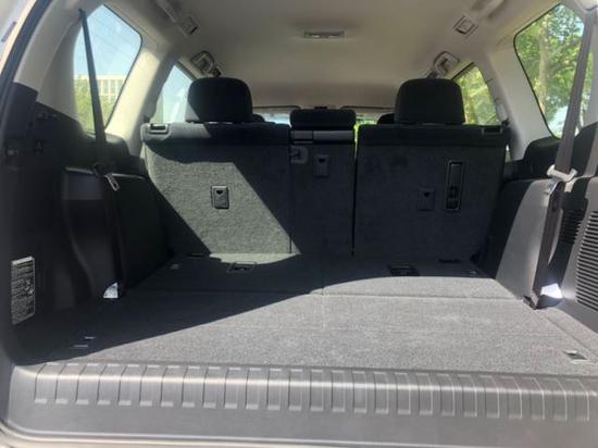 19款丰田霸道2700车内的储物空间设计非常体贴,前后车门都有足够大的杯架,换挡杆前不仅有储物格,还有12V电源可用。而后排的中央扶手和第三排左右两侧内衬板都很体贴的提供了杯架。后备箱的开口有两个,后风挡玻璃可以打开,放一些小东西不必打开宽大的尾门。侧开式的尾门虽然在拿取东西的时候非常方便。