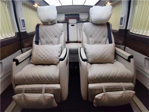 奔驰迈巴赫VS680的第二排座椅采用了奔驰迈巴赫授权专用座椅,支持8项电动调节,此款航空座椅(带360度旋转、通风加热、160度电动后仰)还配备了两个迈巴赫头枕。