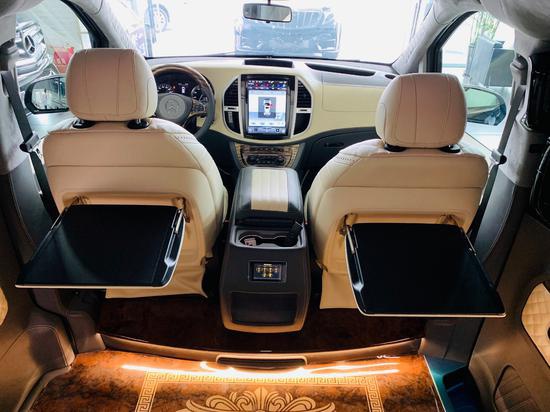 新款奔驰威霆改装迈巴赫VS680商务车区别于奔驰威霆商务车传统式样冗余的中控台按键排列,取而代之的是大尺寸液晶触控屏,更具现代科技感的掌间操控,其下方则保留了更加实用的常备功能键位,行车安全性应该商务车的一大亮点,正副驾驶配备安全气囊,驾驶舱两侧配备安全气帘,此外电动防夹车窗,支持一键升降。在动力方面,搭载2.0T涡轮增压汽油发动机,L型4缸,211马力,与之匹配的是搭配7G-TRONICPLUS七速手自一体变速系统,操控感及燃油经济性全面革新。