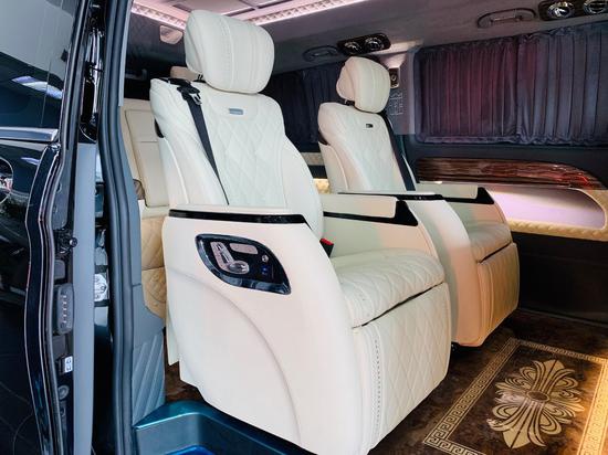 新款奔驰威霆改装迈巴赫VS680商务车作为一款商务车的亮点就是后排的舒适度,座椅晋级为航空座椅,严格依照人体工程学规划,内置座椅加热、通风、按摩、记忆、八向调理、180°旋转、腿拖支撑等功能,乘坐感受十分舒适,广大的座椅就像是自家卧室的沙发一样,尤其是整车装备了车身防侧倾设备,在高速过弯时也不会又太显着的测倾感,作为商务车,新款奔驰威霆改装迈巴赫VS680商务车的表现十分好。
