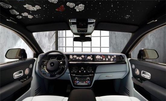 这是一辆定制的2020款劳斯莱斯幻影轿车, 仅从外观看,它与普通的幻影轿车并没有太大的不同,而当你打开车门的那一刻,你才会惊叹什么才是真正的奢华,原本工业化的交通工具俨然已变身为一座梦幻般的“玫瑰花园”。