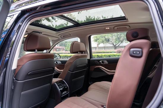 作为宝马SUV新旗舰的X7更是没有太多让人担心的地方。3015mm的轴距足够支撑起2+3+2的七座座椅布局。无论是第排还是第三排都能够让乘坐者有着非常舒适的头部以及腿部空间。更值得一提的是第三排还配有天窗。储物方面同大部分SUV车型一样,第三排座椅支持比例放倒翻折,车辆后部的空间分配灵活多变,后备箱容积可从326升扩展至最大2120升,轻松应对多重出行需求。