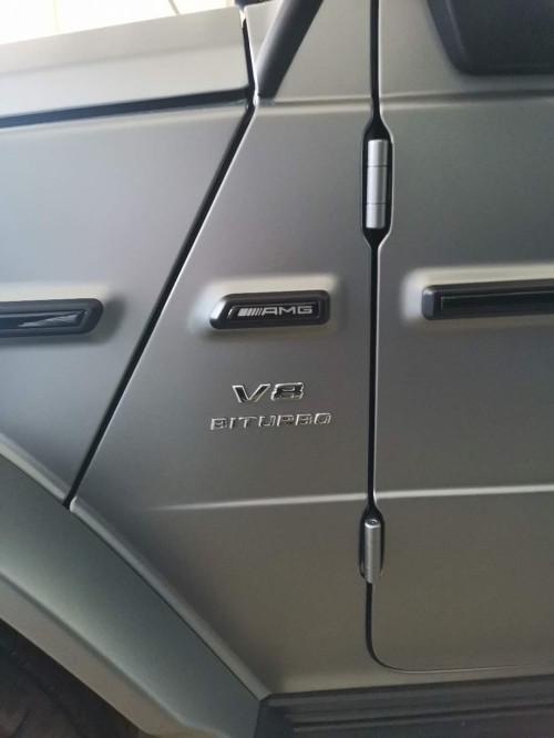 车身侧面的镀铬V8标识和标志性的AMG标识