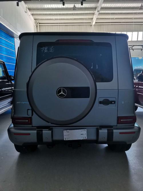 新车的侧面四四方方的,非常帅气,全新一代奔驰G63的车身尺寸为4817mm*1969mm*2187mm,相较于上一代大了一些。靠后的两扇车窗都采用了隐私玻璃,后排乘客的后备箱内的私密性都照顾到了。新车的轮毂造型更具运动风格