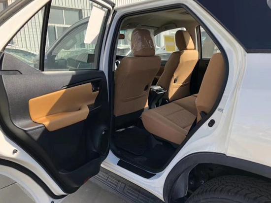 配置:19款中东穿越者2.7 SR5,白棕 底挂,三气囊,265/65R17铁轮,6速自动,7布座椅,多功能方向盘,镀铬门把手,卤素大灯,后雾灯,电动可折叠后视镜,微信mg32366。手动空调,后排空调出风口,带USB单碟CD/收音机,6喇叭,鲨鱼鳍天线,SR5徽章,胎压监测,地毯,黑色脚踏,LED高位刹车灯。