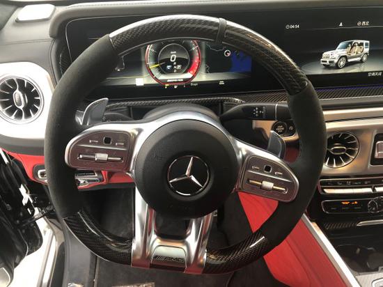 20款奔驰G63内饰采用全碳纤维包裹,更配有AMG行驶控制 (AMG RIDE CONTROL) 运动型悬挂只需按下方向盘按钮或选择相应的变速箱模式,即可在 “舒适”、“运动”和“运动增强”三种模式之间做出选择,实现当前驾驶状况下出色的减震特性。配有AMG高性能排气系统从柔和到激昂,AMG高性能排气系统的声音可根据目前所选的驾驶模式通过3个可调式废气风门进行全面调节。驾驶者也可以通过方向盘按钮改变声音特性。