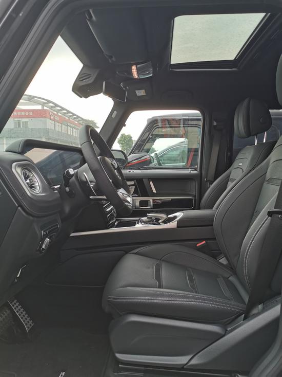 配置:金属漆,9速AMG变速箱,黑色AMG独家黑红双拼内饰,干椒红碳纤维饰件,红色安全带,可调阻尼底盘,主动车道保持,主动刹车辅助,AMG红色卡钳 ,雷达测距,柏林之声3D音响,电动天窗,风挡玻璃加热,超细纤维内饰(鹿皮顶),64色氛围灯,360环影,停车辅助(中规智选套装,选装加24200),几何多光束LED大灯(中规G63选装加19000元),AMG暗夜包,增强座椅舒适包(多轮廓座椅,通风按摩),AMG高性能Nappa真皮方向盘,AMG驾驶包时速240公里更加运动和灵活的驾驶体验(底盘更运动 更灵活最高时速更高,中规无法选配)