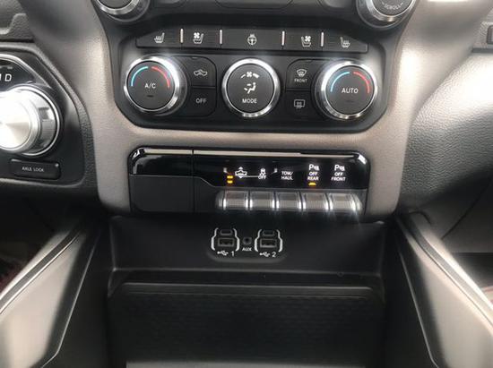 20款道奇公羊长角号真皮座椅各自独立,配有加热、通风等舒适功能,每个座椅独立配一个操控手柄,各项功能由乘坐者自己控制,运动座椅所带来的包裹性要比普通座椅好很多,后排中间乘客同样拥有头枕和三点式安全带,中控台的设计简洁硬派,符合公羊的气质。仪表盘底边有花纹,则更加凸显了这款车的文雅性,完全摆脱了美式的粗糙感,无论是边缘、接缝,都处理的极为精细,软性材质的仪表台设计,摸上去手感非常舒服,并无些许生硬之处。20款道奇公羊长角号不仅外观上刚劲有力表现出皮卡车所具备的硬朗风范,而且内部配备的豪华性在同级别车中同样可圈可点。