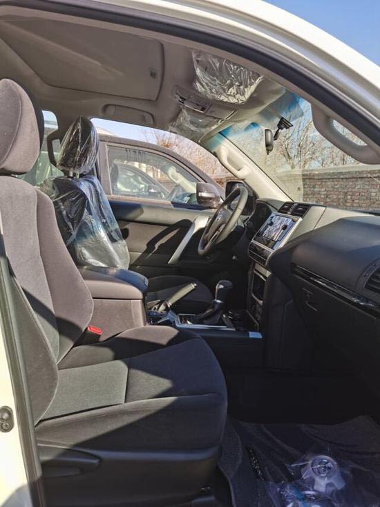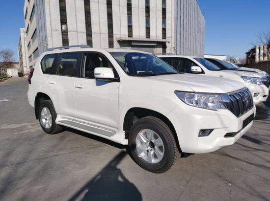 19款柴油霸道2.8T,新款D4D柴油发动机,国5环保公开,6速变速箱,底挂备胎,五座,黑色内饰,九气囊,多功能液晶仪表,多功能方向盘,智能卡无钥匙进入,一键启动,电动折叠后视镜,LED日间行车灯,光感卤素大灯,雾灯,17寸铁轮毂,黑色中网,黑色倒车镜和门把手,手动丝绒座椅,主驾驶带腰部支撑,中央差速锁,坡道辅助,防侧滑,2档起步,87升油箱,尾门玻璃可开启,全时四驱,二排座椅中间带扶手,胎压监测