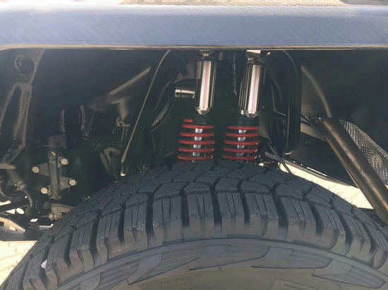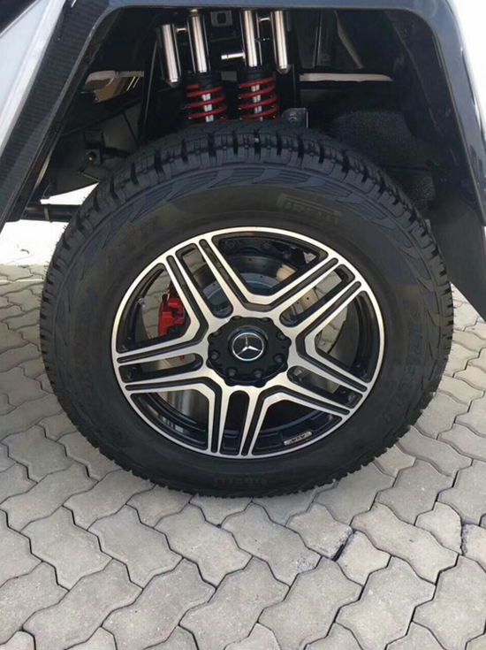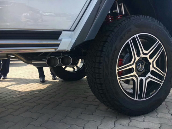 在越野性能上,2017款奔驰G500 4x4⊃2;的离地间隙达到了450mm,涉水深度为1000mm,接近角和离去角分别为52°和54°。越野装备方面,进口2017款奔驰G500 4*4依然配备了G级车型引以为傲的前中后三差速锁系统(这和普通G500相同),并采用了与普通版G级车型不同的门式车桥。此外,新车装配了一套尺寸巨大的越野轮胎,轮胎型号为325/55 R22。