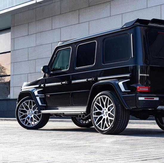 Monoblock F “铂金版”锻造轮圈直径为23英寸,从原厂21英寸基础上提升了两寸,采用双九辐设计,与车身很搭。悬架方面,巴博斯为其安装了一组控制模块,可在车辆高度行驶时,自动降低车身高度30mm左右。
