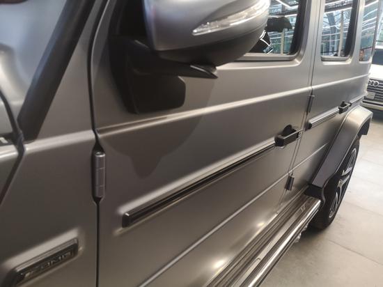 正面上的进气格栅依旧是奔驰G家族式的风格,简单但不失霸气,两侧的炮眼大灯基本上秒杀同级人的任何车辆,而这组大灯则是由银色的日间行车灯所包围,霸气的前包围也彰显出了这部车的硬派感!整部车在尺寸上与上代车型保持了一致,侧面上的感觉也依旧是方方正正的设计,从车头到车尾没有展现出一丝的流线,就是这么硬气。轮眉的设计也是给人一种硬汉的感觉!