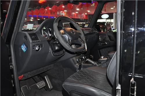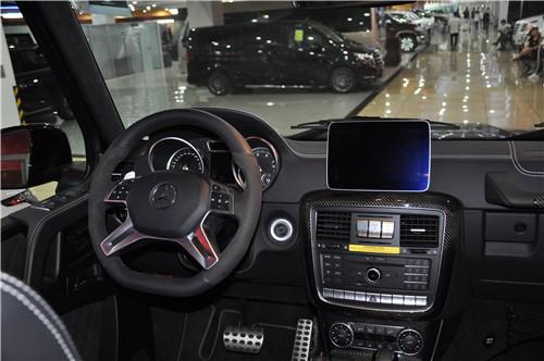 奔驰G550经过全新改款内饰豪华气派,卓越的品质和精致的工艺在车内体现得淋漓尽致,对细节的精益求精是内饰设计中的重要原则。车内采用深色调与桃木装饰,黑色真皮运动座椅非常舒适,方向盘以高档真皮包裹装饰,触感极其细腻。