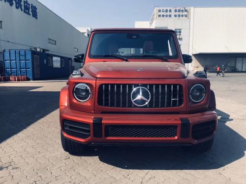 20款奔驰G63 (配置|询价)AMG运动又独特的外观造型设计,经过重新设计的前进气格栅与两侧圆形大灯相互呼应,整个前脸的造型更为抢眼。进气格栅的多幅式镀铬采用了镂空的设计,保险杠也经过了重新的设计,让新款大G (配置|询价)63的前脸看上去更为粗犷,氙气大灯下方还增添了时下流行的LED日间行车灯设计,看起来更具时尚感。