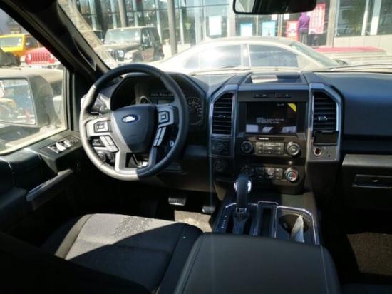 新款F150它的表面颇具动感,内饰奢华,配置富厚,同时兼具跑车的动力机能、越野车的全地形制霸本领和豪华轿车的乘坐恬静性,并且它的改装空间也很大。车内配备标准独特的皮革和布艺装饰的座椅,驾驶员侧的电动十向调节。这些座椅同时具备记忆功能。中央控制区搭配了触控式显示屏,其下方则是多媒体控制区及空调面板,采用旋钮 物理按键的组合。中控功能区域可分为三个小控制区,最上端为音响控制及导航控制,中间为收音机调节控制,最低端为空调及座椅加热控制。在内部空间的庞大基础上,福特也提供了非常具有舒适性与服务性的内饰配置。另外,新车还配备了一块大尺寸的全景天窗。