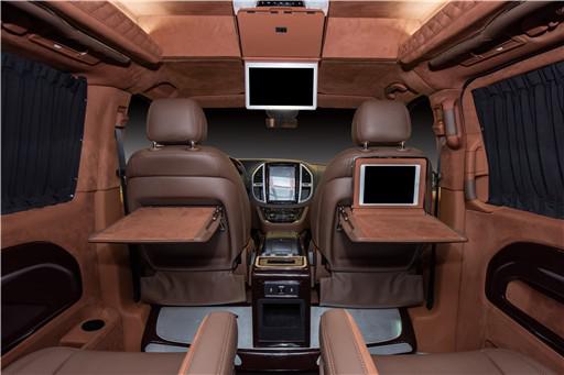 ●折叠式11.6寸高清液晶沉浸电视●苹果IPAD办公娱乐系统●主副座椅中间便携式9L电子冰 箱●迈巴赫九宫格航空顶灯●全车LED氛围灯(营造宁静安详的休息氛围)