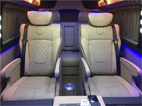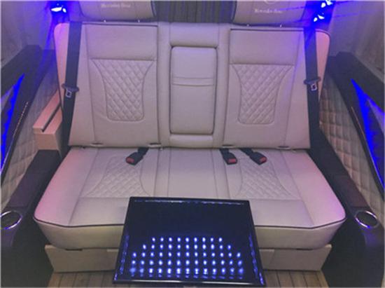 奔驰新威霆七座商务车七座苹果创世版改装内饰配置:意大利头层小牛皮 缅甸柚木地板 加拿大桃木,内饰 ipad苹果操作系统 前后对讲系统 boss音响系统 全按摩,座椅系统 多功能方向盘,卫星接收器,防夹手电动门,BOSE5.1立体环绕音响,DVD,音响功放,三星电视,菲利普娱乐系统。以下图片均为奔驰威霆商务改装车国5标准,C1驾照可开。