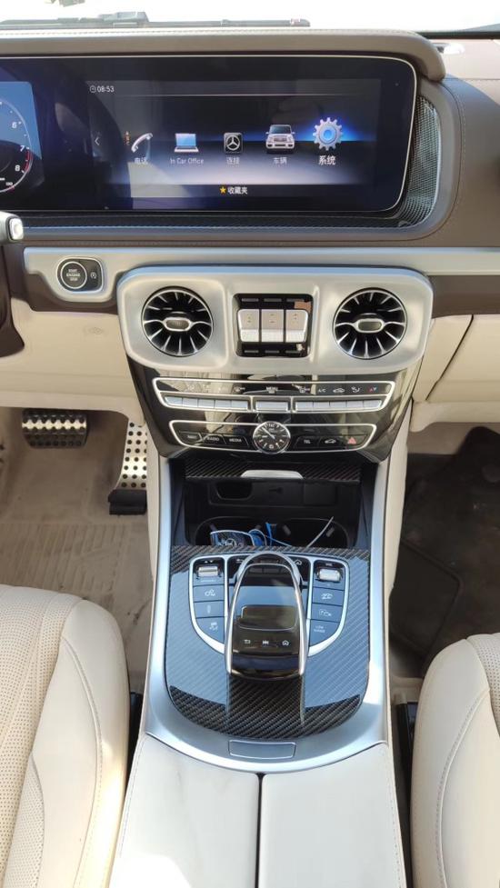 全新G63内饰方面,新G63保留了新G500的整体设计,除配色差异外,新车还换装了全新造型的底式AMG运动方向盘,其两侧配以打孔皮质包裹,下部镀铬装饰的造型也与新G 500明显不同,看上去十分战斗。此外,全液晶仪表盘+中控大屏的双12.3英寸屏幕设计在新车上也没有缺席,营造出了浓郁的科技感。