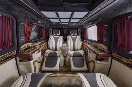 进口奔驰商务车V250高顶迈巴赫VS680商务车全新规划的三幅式方向盘更是选用了内嵌真皮外镶桃木的精美技术,进口奔驰V250改装6座商务车炮筒式仪表盘,造型时尚,奔驰V250迈巴赫版商务车中央是一块高分辨率驾驶显示屏,科技配置还有超薄液晶电视、8.1寸独立悬浮屏、蓝光播放器以及DVB-T信号接收系统等。进口奔驰V250商务车中央扶手箱,被设计成了一个拥有最冷可达零下18度的车载冰箱,夏日出行更为便捷!座椅样式多样可根据喜好改装。