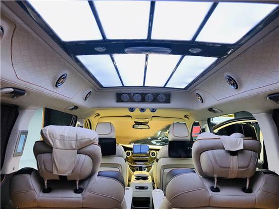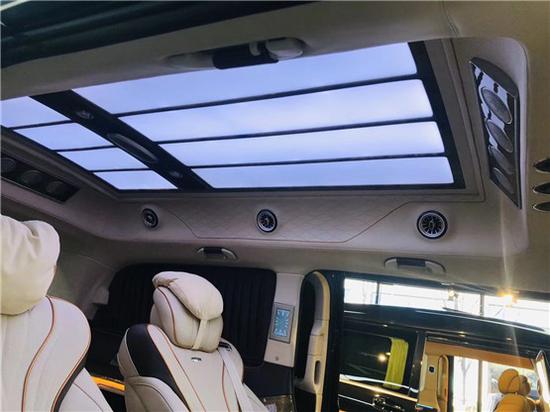 奔驰V250迈巴赫VS880高顶房车,奔驰V250商务车改装改装 每一席座椅皆享尊贵定制级的豪华舒适,即便身处第三排,亦能享受以人机工程学打造的应需而变的舒适旅程,奔驰V260L商务车改装后排坐椅垫可前后电动调节,椅背整体可倾斜,实现躺卧姿势。宽大的中央扶手采用皮质包覆,提升用户便利性。