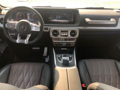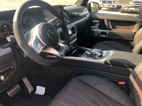 奔驰G63内饰方面,采用家族化设计风格,新样式三幅式AMG专属方向盘、仪表盘与中控屏采用连屏设计,视觉上非常有科技感。车内使用了大量的银色哑光饰条的点缀,看上去很有运动氛围,同时圆筒式的空调出风口和副驾前方的扶手,进一步展示了新车的越野风格。