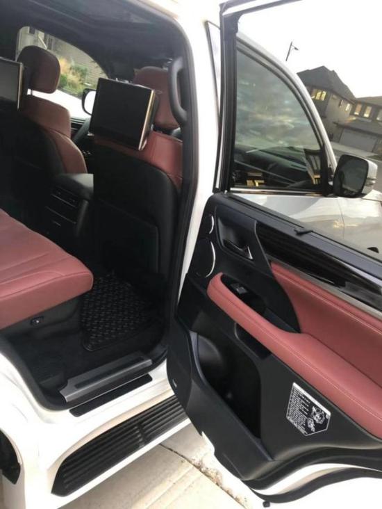 20款雷克萨斯LX570内饰中控台及仪表台上方的材质为软性真皮包裹,材质优越,中控台按键布局简洁,按键及按钮手感好,空调区域布局好操控,车内空间宽阔,雷克萨斯LX570是您最好的选择。全新设计的多功能方向盘、中控台、车门内侧均由真皮及珍贵实木内饰包裹,半苯胺高级真皮座椅给予乘客恰到好处的支撑和柔软舒适的触感。