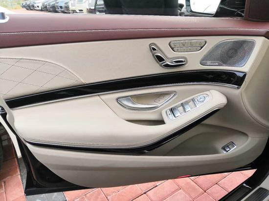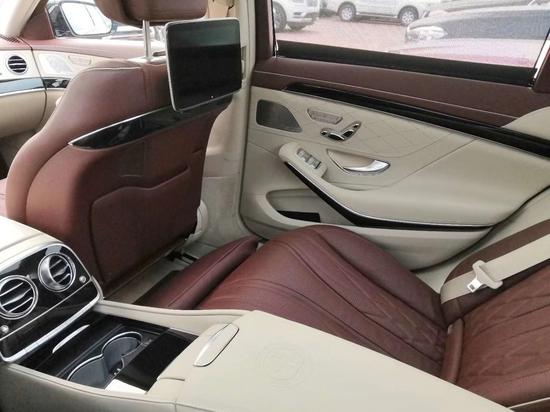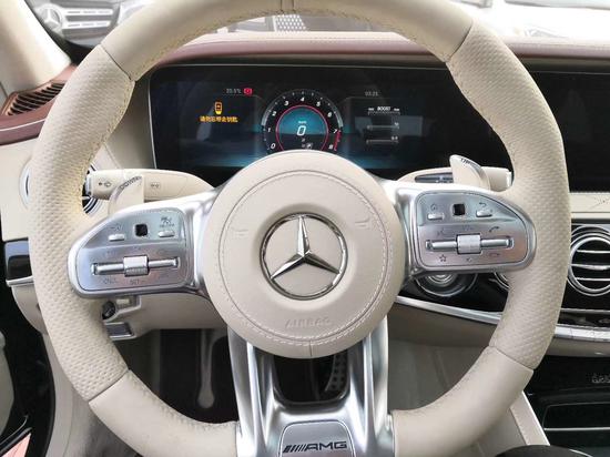 内饰方面采用了奔驰全新设计风格,其内饰面板和车顶均由真皮包裹,搭配真皮座椅,彰显华贵气质。中控台配备有两块大尺寸液晶中控显示屏,出风口中央配有IWC万国时钟,凸显整车豪华感。全新三幅式多功能方向盘采用黑色翻毛真皮包裹,并用银色镀铬进行点缀,战斗感、科技感、豪华感无缝融合。