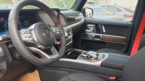 配置:2020款墨版G500灰/黑 12.3寸大屏,64色氛围灯,自适应阻尼悬挂系统, 前排座椅加热、通风、按摩,20寸AMG多幅轮毂,AMG运动排气,AMG运动方向盘,卡钳梅赛德斯字样,Nappa皮革内饰,皮革仪表台,无框内后视镜,disigno DINAMICA车顶内衬,多轮廓座椅,红色安全带,单选:环车影像。