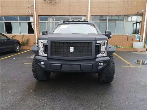 乔治·巴顿战车充分演绎了“硬汉座驾”的品牌精髓,外观采用了装甲车般的设计风格,C字形前大灯组造型使该车辆看起来十分霸气。此外,全车被磨砂黑车漆涂装配合高挑的轮眉,一切都昭示着这款车的狂野气质。