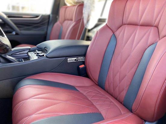 20款雷克萨斯LX570全新设计的多功能方向盘、中控台、车门内侧均由真皮及珍贵实木内饰包裹,半苯胺高级真皮座椅给予乘客恰到好处的支撑和柔软舒适的触感。中控台及仪表台上方的材质为软性真皮包裹,材质优越,中控台按键布局简洁,按键及按钮手感好,空调区域布局伊人,车内空间宽阔,是您最好的选择。