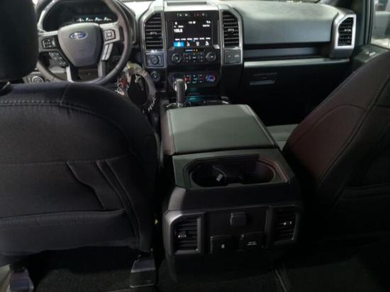 19款福特F150车内配备标准独特的皮革和布艺装饰的座椅,驾驶员侧的电动十向调节。这些座椅同时具备记忆功能。中央控制区搭配了触控式显示屏,其下方则是多媒体控制区及空调面板,采用旋钮+物理按键的组合。中控功能区域可分为三个小控制区,最上端为音响控制及导航控制,中间为收音机调节控制,最低端为空调及座椅加热控制。