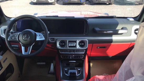 奔驰为新款G63 AMG进行了全面修饰,换上了新设计的前保险杠,三块大面积散热口预示着强悍的动力,进气格栅改用双横条配三叉星,四支大口径排气管从车身两侧后轮前部的侧裙处探出,最后再配以AMG传统风格的大尺寸五幅合金轮毂。[