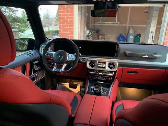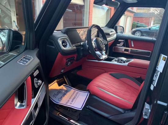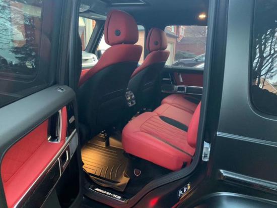 20款奔驰G63[大满配]磨砂黑/红 配置:①独家内饰升级包(手工Designo菱形格座椅,Dinamica麂皮顶棚,Nappa仪表台真皮包裹)②AMG暗夜包(AMG制动卡钳、运动排气、熏黑前大灯、熏黑尾灯、黑色前中网、黑色后视镜、黑色备胎罩侧环)③座椅舒适包(通风 、按摩、多轮廓座椅)④碳纤维内饰 ⑤碳纤维方向盘 ⑥22寸熏黑轮⑦熏黑保险杠。