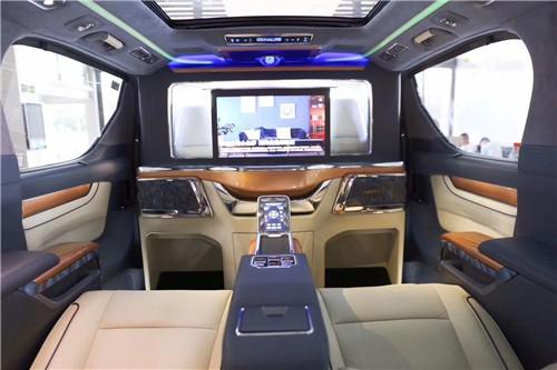 丰田 埃尔法蒙娜丽莎皇家定制版,蒙娜丽莎四座版采用5门4座 MPV整车布局,后舱后排独立两座与前舱全隔断商务洽谈私密空间,配备前后舱即时对讲手提电话,座椅扶手多功能键区及隐藏式行政大桌板,整舱氛围灯、阅读灯及前方隐藏式升降电视等娱乐系统。双侧 电动侧滑门及电动后尾门,360环车影像,随动转向大灯无疑是顶级的商务车。