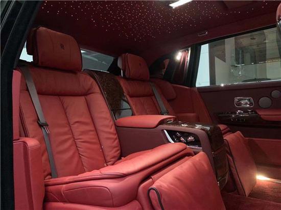 劳斯莱斯幻影电动折叠板和后排影院系统被巧妙的隐藏在前排座椅的椅背后,只需轻触按钮,便可以自如收放桌板和影院系统,带来完美的剧院体验。后排中央固定扶手做了重点优化,其中国可容纳带有威士忌酒具的酒柜、香槟酒具和冷藏箱,方便乘客畅快交谈,后排座椅角度可以任意调节,这一设计让客户无需转头便可视线自如交流。举世闻名的星光饰顶抬头可见,整个车厢内饰全部以最精美的高档材料装饰,使车内极具触感。
