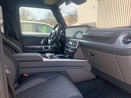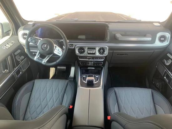 20款奔驰G63AMG档次、质感和科技配置都明显提升全新奔驰G级 (配置|询价)的内饰相比老款有了明显的提升,采用了奔驰最新的双屏幕式设计,全液晶仪表盘和中控台屏幕都达到12.3英寸,同时内饰质感和工艺都有了很大的进步。中控涡扇式空调出风口也颇具设计感,车内的高档皮革内饰以及标有V12钻石图案设计的座椅、车门面板和脚垫,无不彰显着车主的尊贵身份。