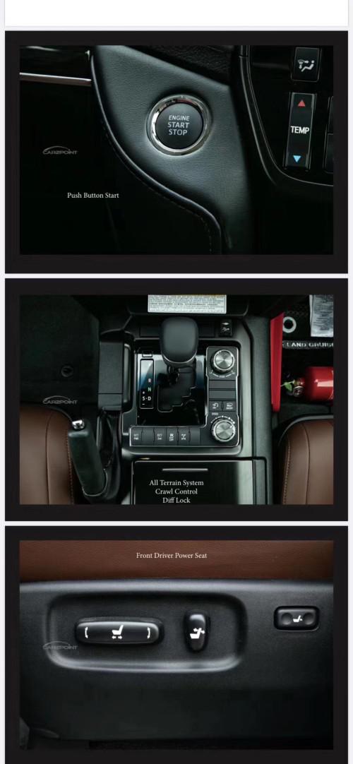 2020款酷路泽4000GT版 天窗 底挂 新款运动镀铬中网 前后运动包围 前后雾灯 熏黑LED氙灯 大灯清洗 行李架 主驾电动座椅 航踏 巡航 一键启动 智能卡 桃木多功能方向盘 桃木内饰 掉头 坡道辅助 中差 蠕行模式 高低速四驱模式 高级仪表盘 自动空调 冰箱 运动限量标 尾翼 自动电折镜 8气囊 20轮 电尾门 前2后4电眼 胎压监测 138升油箱 车身稳定 遥启 流水灯 无线充电。
